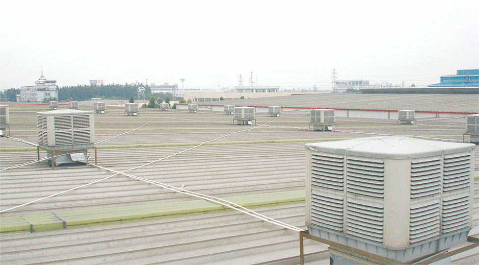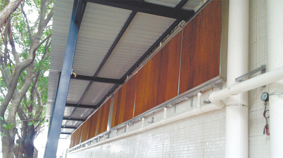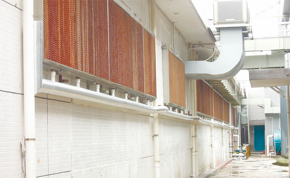 系统工作原理:其节能原理和环保空调一样都是利用了水蒸发需要吸收热量这一自然现象。