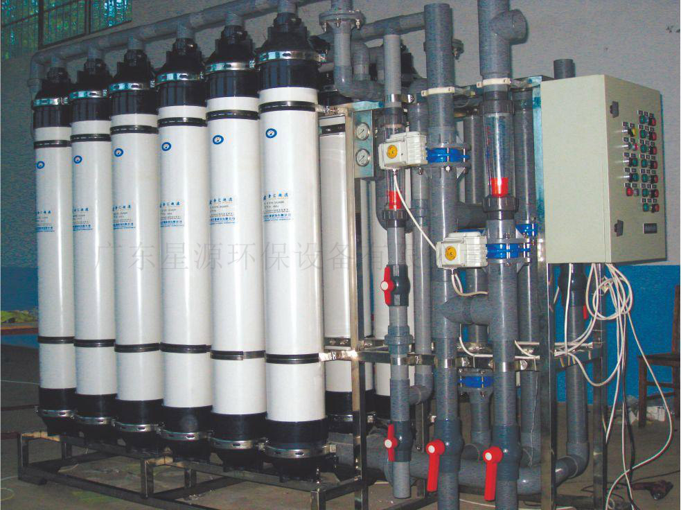超滤系统主要是由预处理、超滤主机、后处理等三大工艺组成。超滤装置的核心工艺采用超滤膜分离技术, 以其物理截留方法来去除水中比膜孔径大的一些有害杂质。